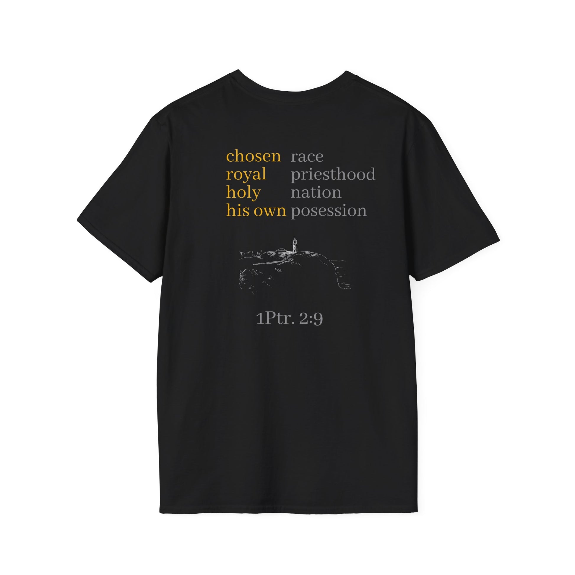Chosen Christian Unisex T-Shirt with Kauai Lighthouse, 1 Peter 2:9 Reminder, Faith Apparel, Religious Tee, Inspirational Shirt