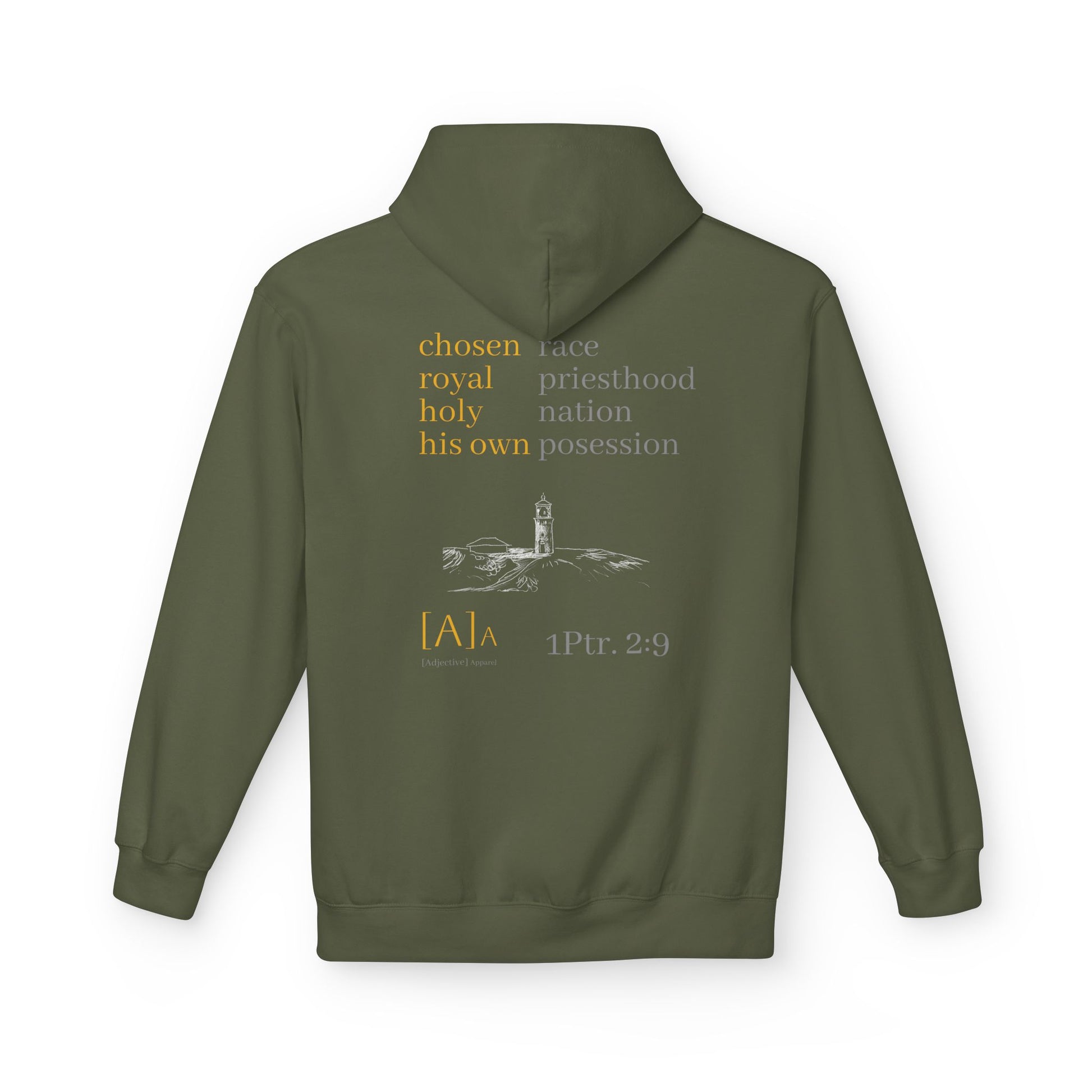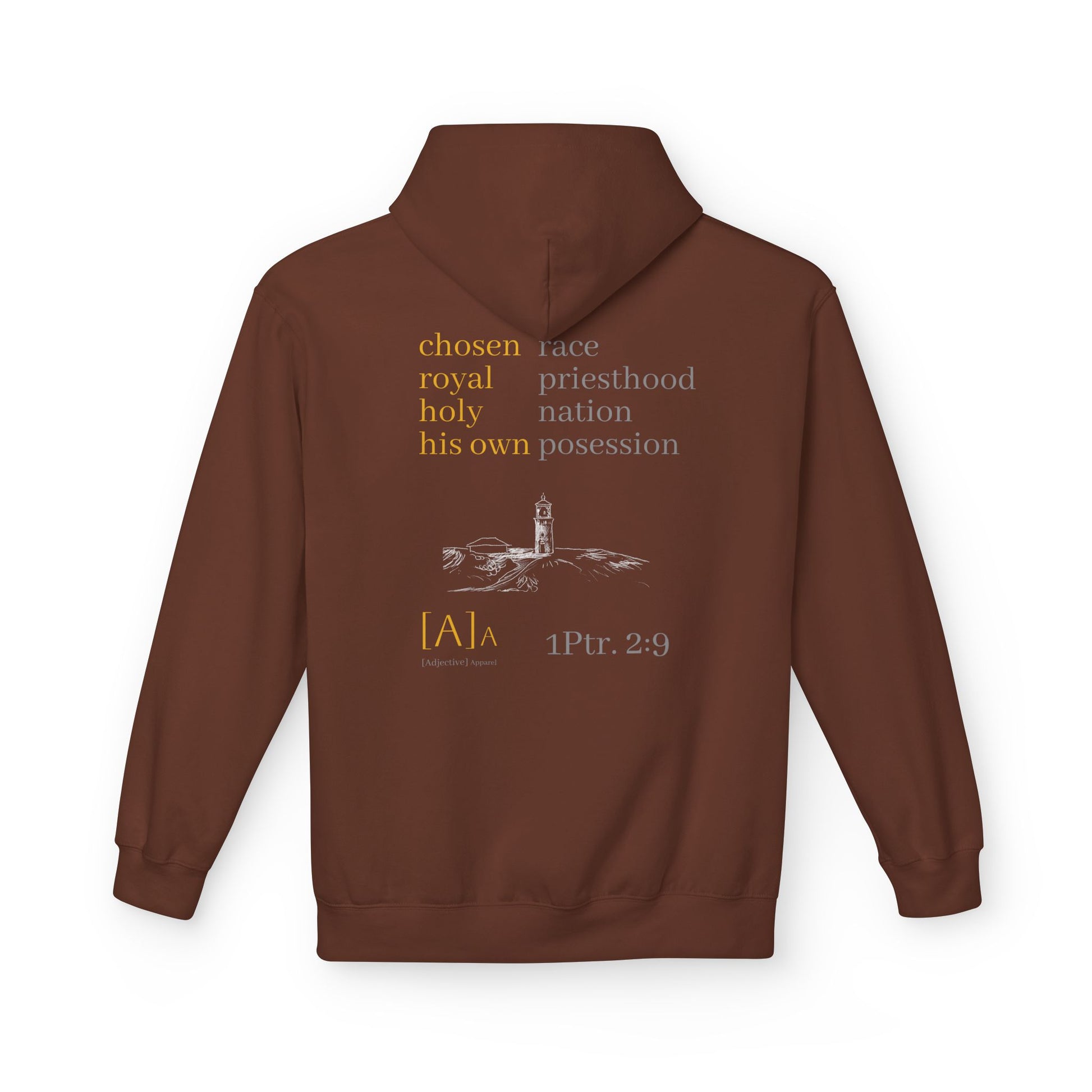 Chosen Hoodie - Lighthouse Christian Unisex Kauai Scripture Fleece, 1 Peter 2:9 Design, Sweatshirt, Gift for Men, Women, Religious Clothing