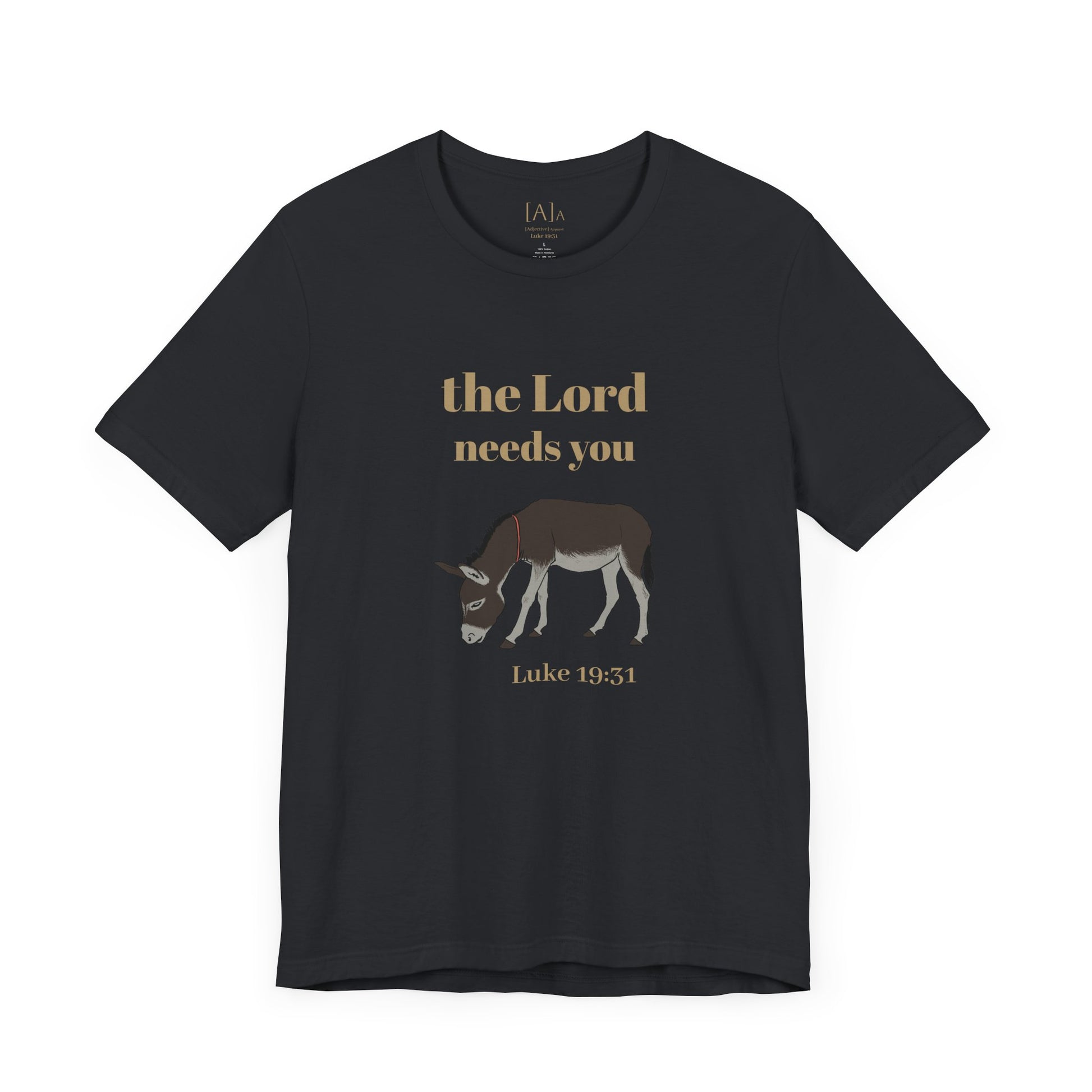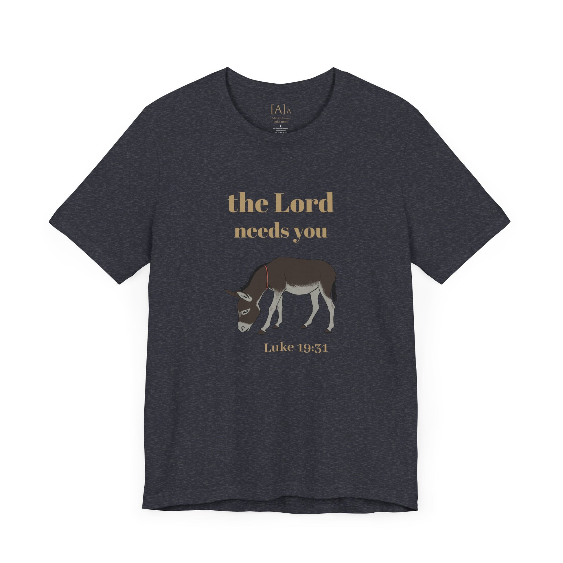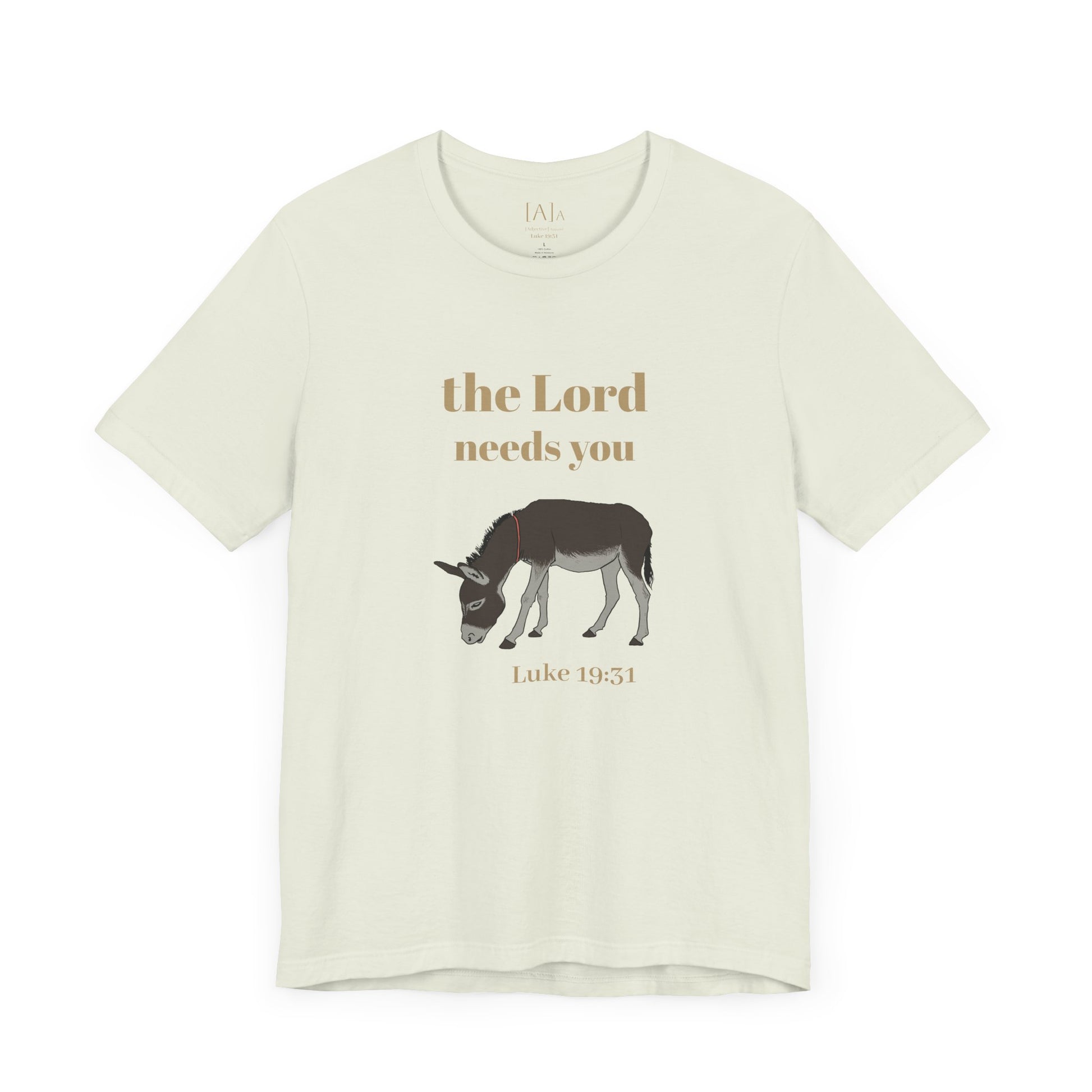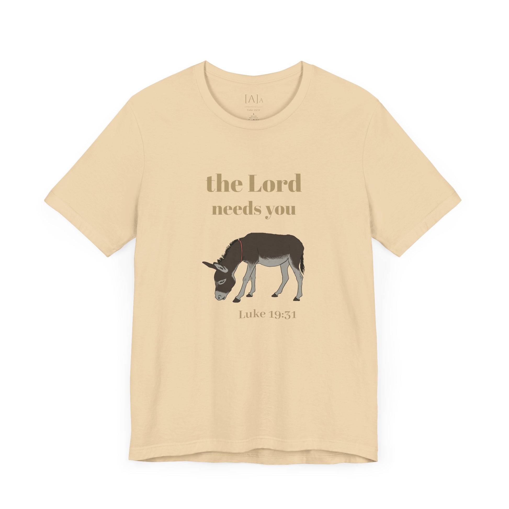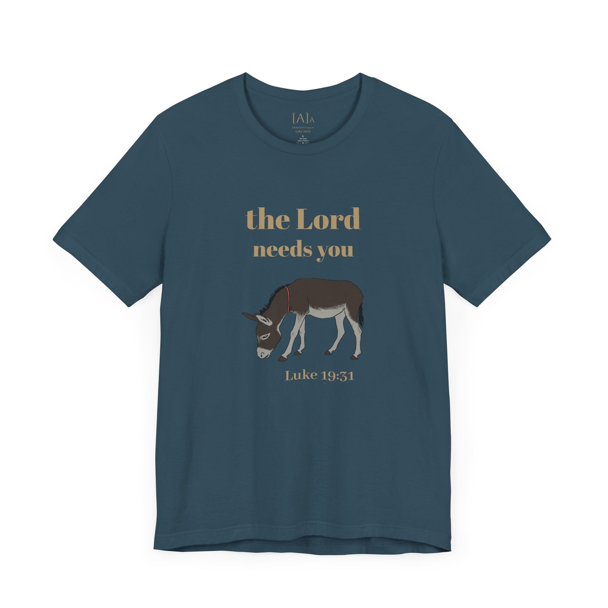 This Donkey ("The Lord Needs You") Unisex Tee exudes a playful and humorous vibe, perfect for those with a lighthearted sense of humor. It can be worn casually or as a statement piece, making it versatile for various occasions. Ideal for those who enjoy unique and quirky designs, this tee is relevant for religious holidays and events.