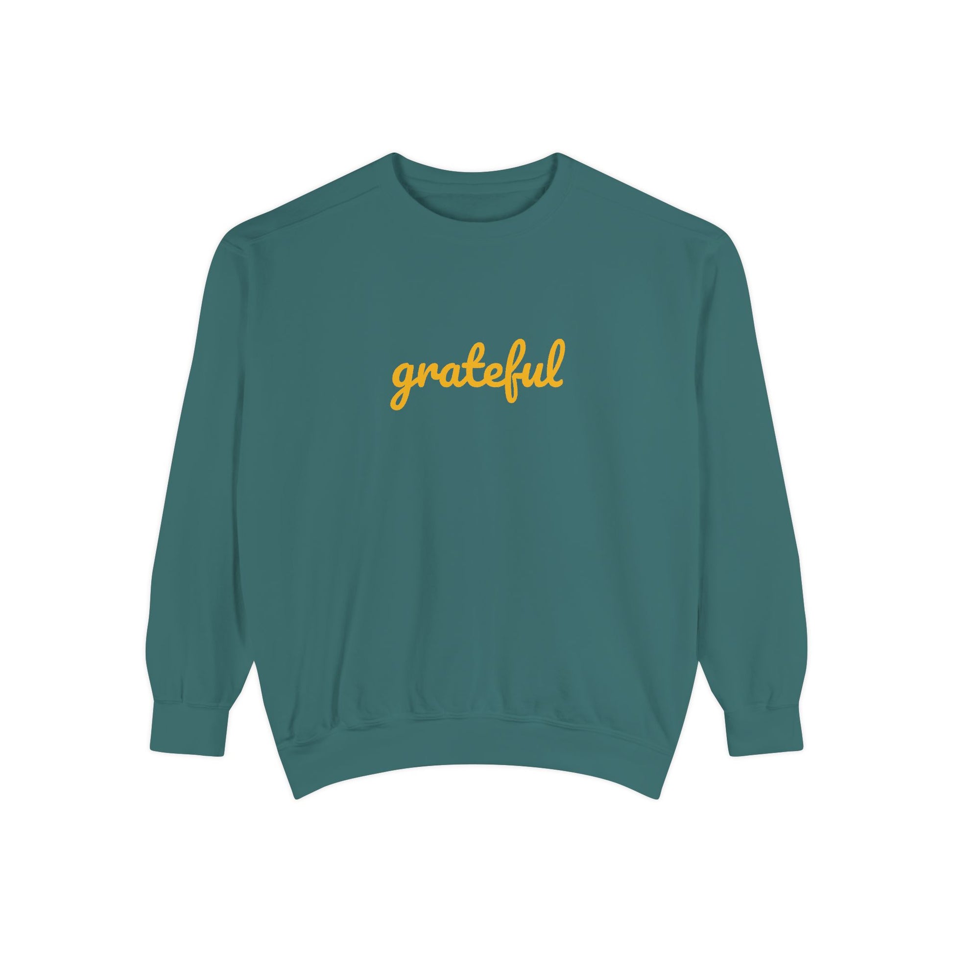 Stay cozy and stylish in this Grateful Unisex Garment-Dyed Sweatshirt. Perfect for those who appreciate comfort and a vintage look. Ideal for casual wear, lounging at home, or layering up during the colder months. Great for fans of gratitude-themed apparel and perfect for Thanksgiving or any holiday season.