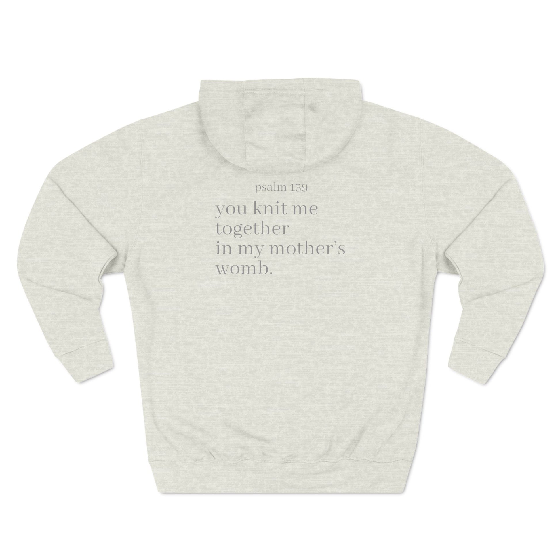 Knit Together In Mothers Womb Premium Heavy Hoodie Psalm 139 Ti Leaf Three Panel Fleece Sweatshirt, Pullover Jumper, Cozy Warm Hooded Top