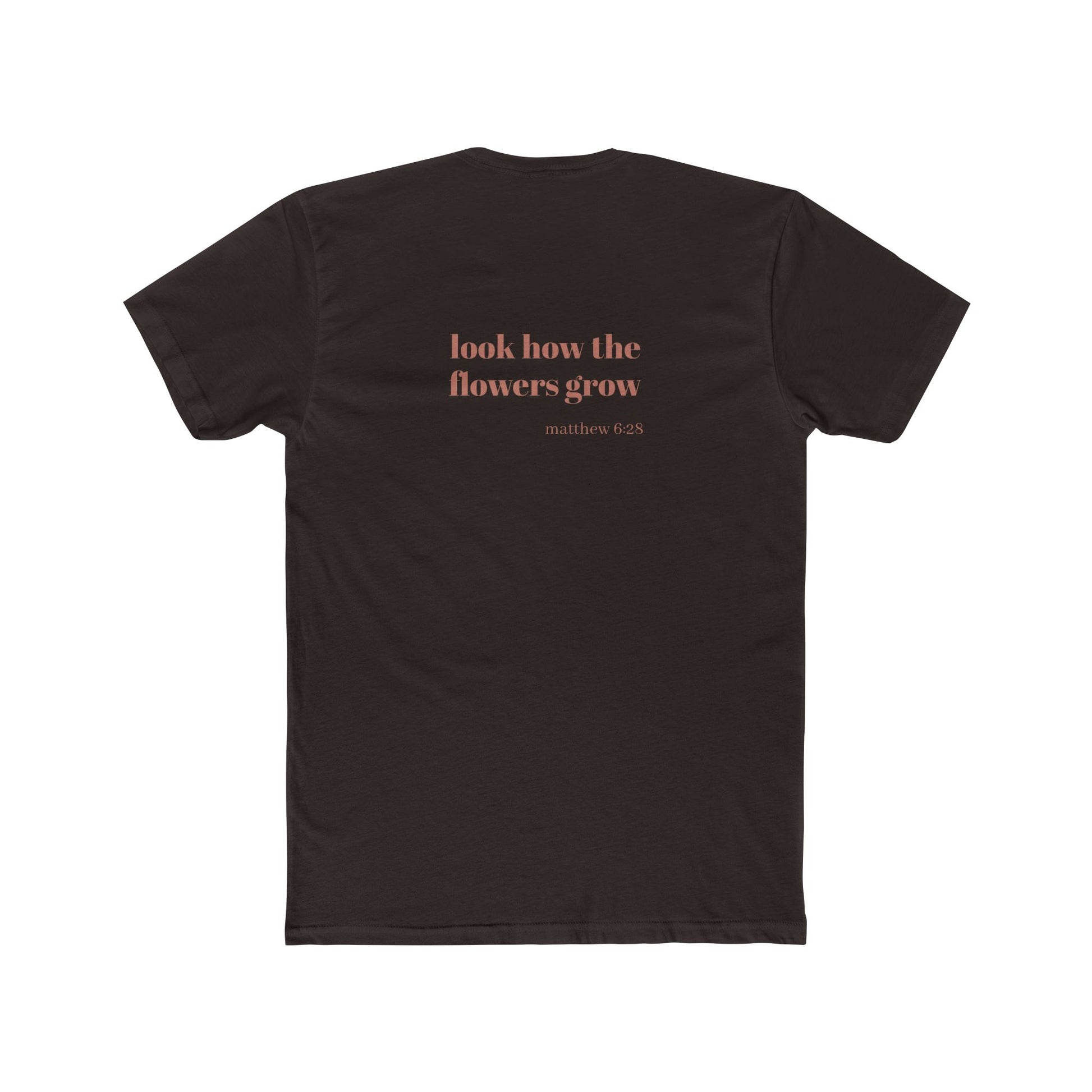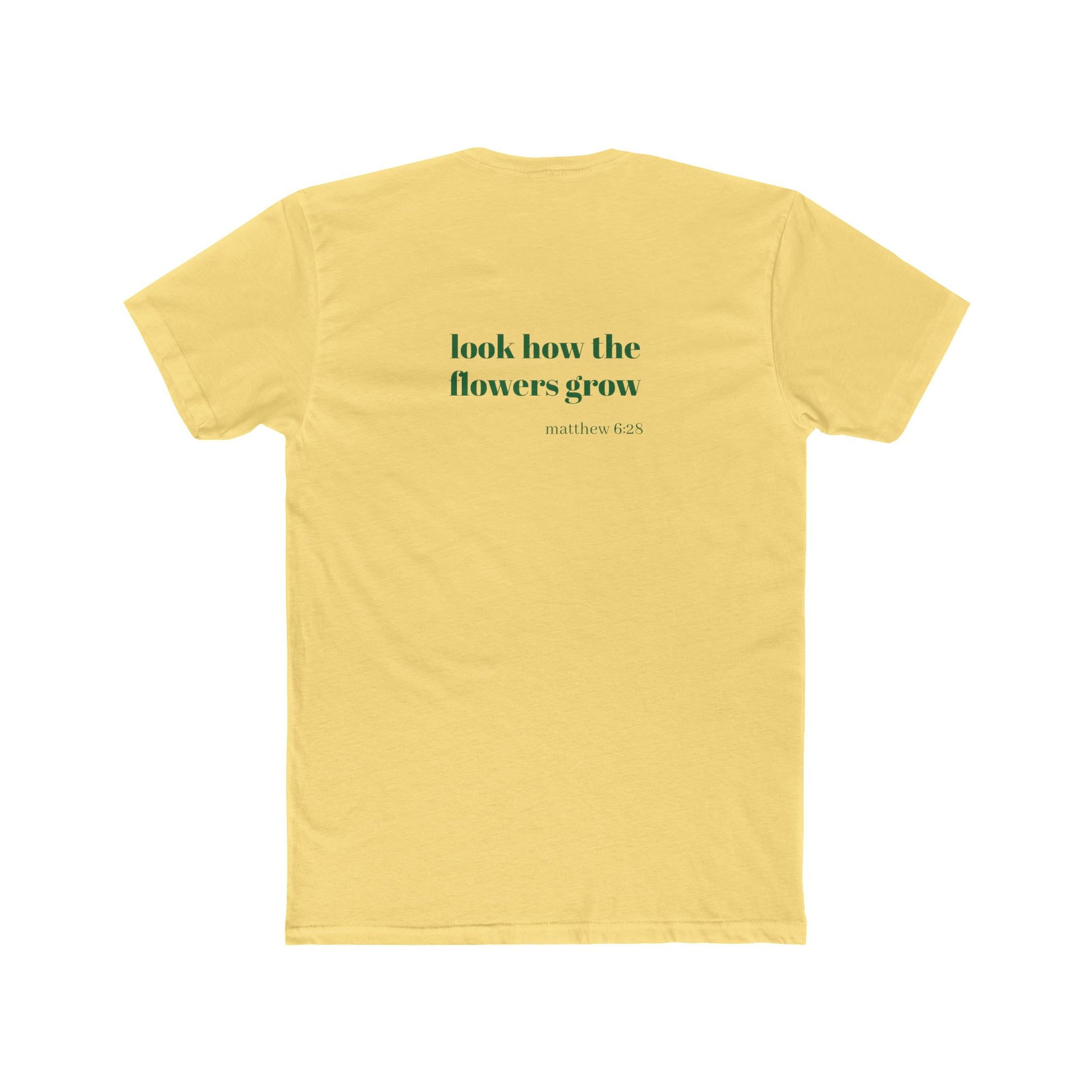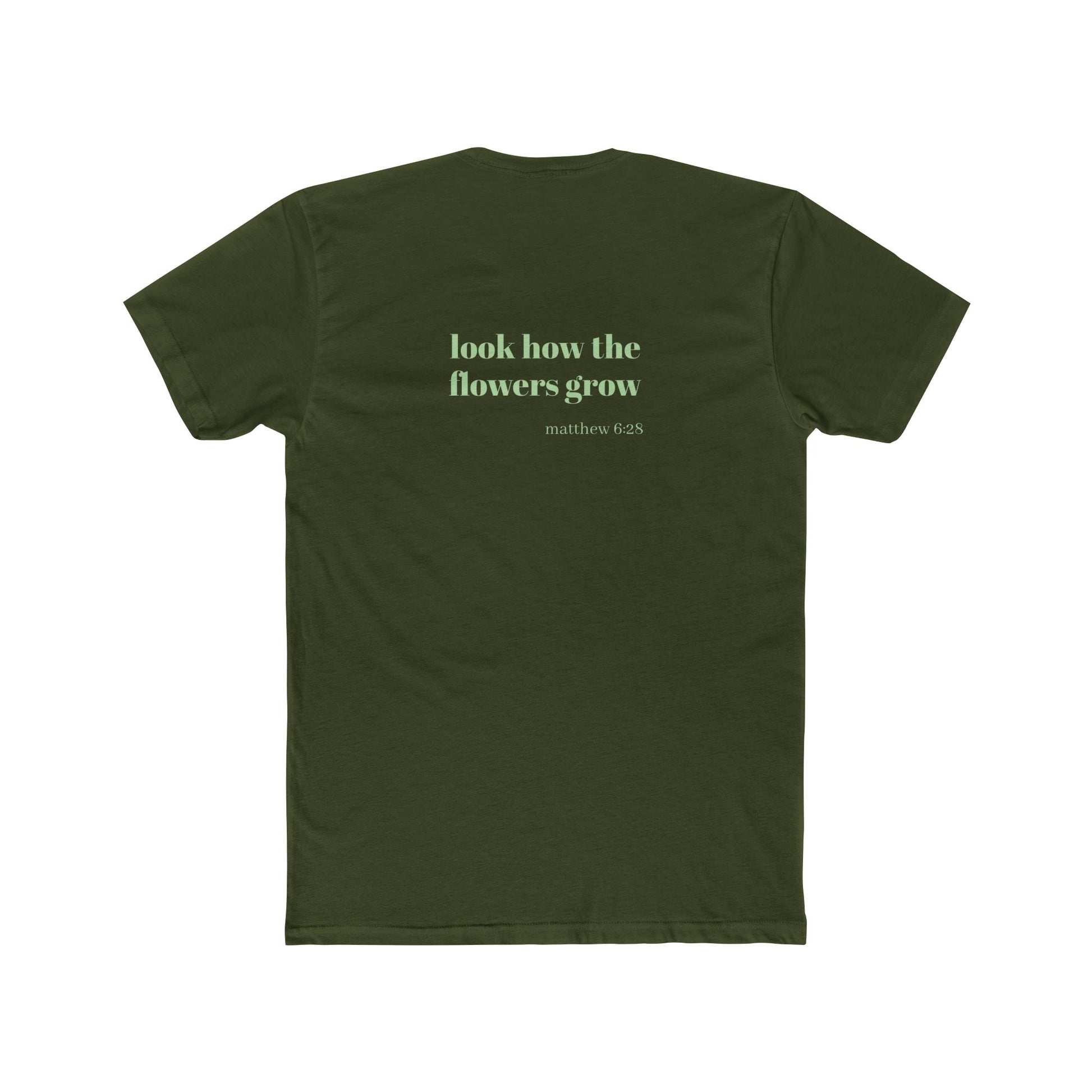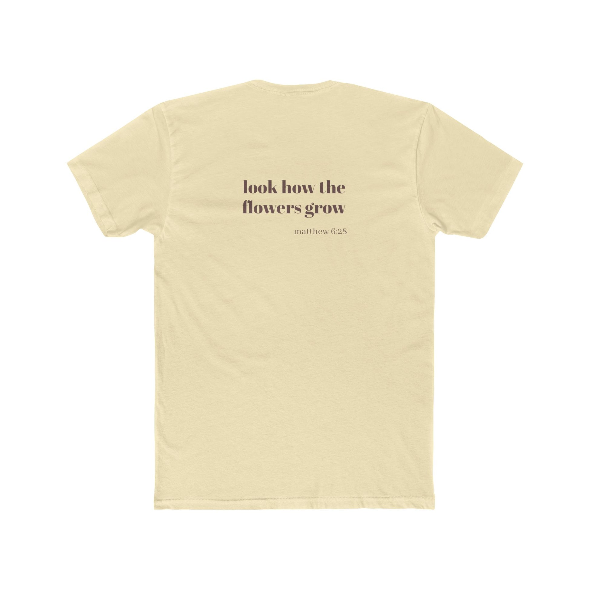 A trendy and stylish Plumeria t-shirt featuring the quote 'Look How The Flowers Grow'. This t-shirt exudes a laid-back and carefree vibe, perfect for nature lovers and those who appreciate artistic designs. It can be worn casually or dressed up for special occasions. Ideal for adults, this t-shirt is perfect for spring and summer gatherings, nature walks, and casual outings. Product features - Ribbed knit collar for shape retention - With side seams for structural support - Shoulder tape for stability - Made with 100% combed, ring-spun cotton for comfort - Classic fit and crew neckline for versatile styling options Care instructions - Do not dryclean - Machine wash: cold (max 30C or 90F) - Do not bleach - Tumble dry: low heat - Iron, steam or dry: low heat